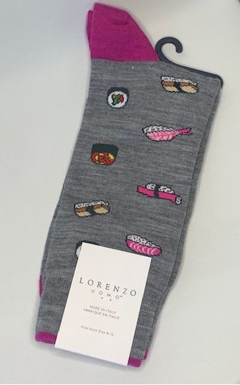 A Fun gift- Lorenzo wool blend socks made in Italy, featuring your favourite sushi.